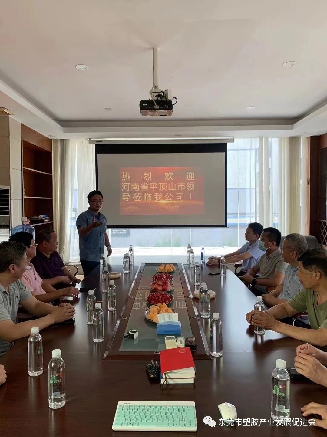 6月17日,东莞市塑胶产业发展促进会副会长单位黄泳鑫代表接待河南省平顶山市人民政府领导,在东莞市联核塑造高分子材料科技有限公司召开座谈交流会
