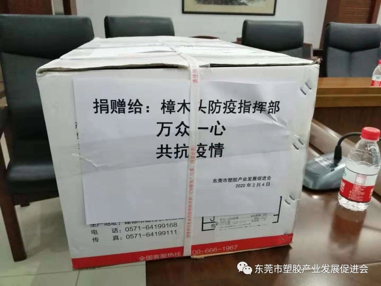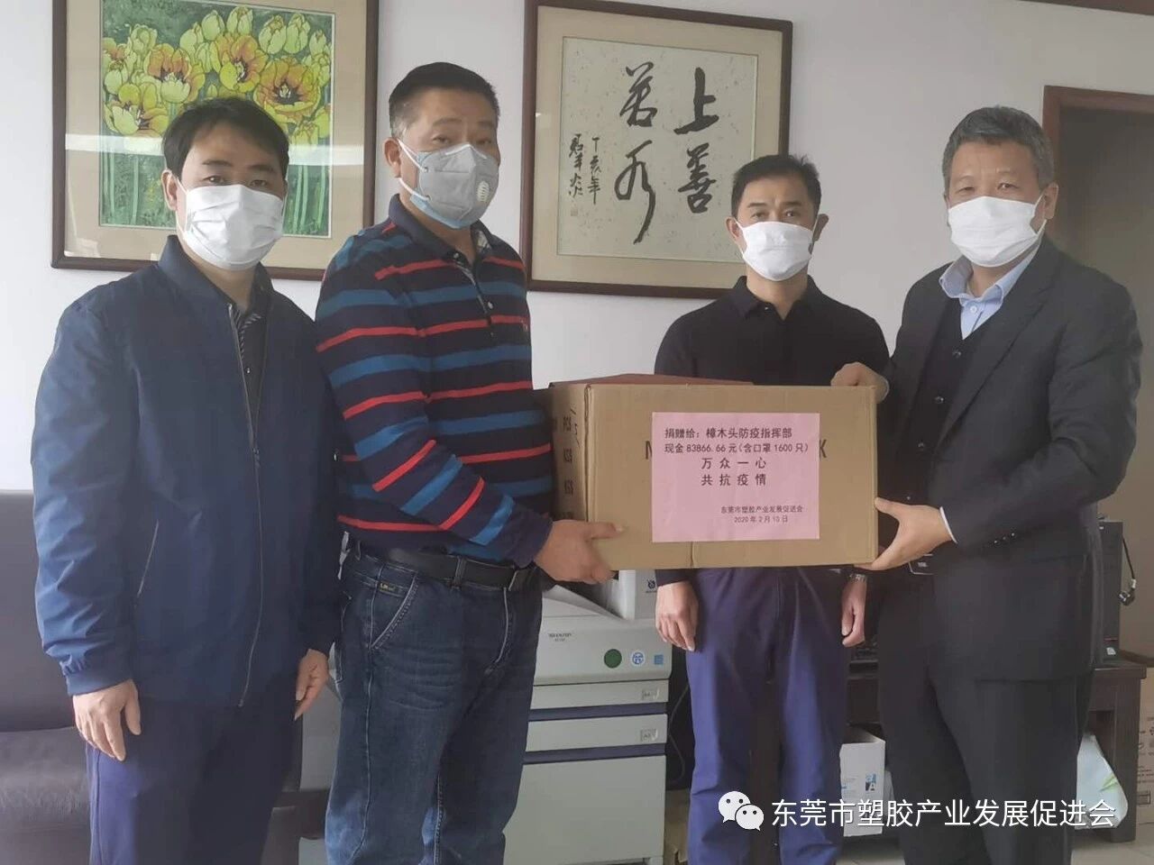 从元月31日起,本会动员广大会员寻找防疫物资货源,并先后组织采购了三批防疫口罩,并于2月4日、2月5日、2月10日,采取现场交付和快递直邮的方式,向樟木头镇防疫指挥部、樟木头派出所捐赠了1100只类KN95医疗级口罩和500只普通口罩。