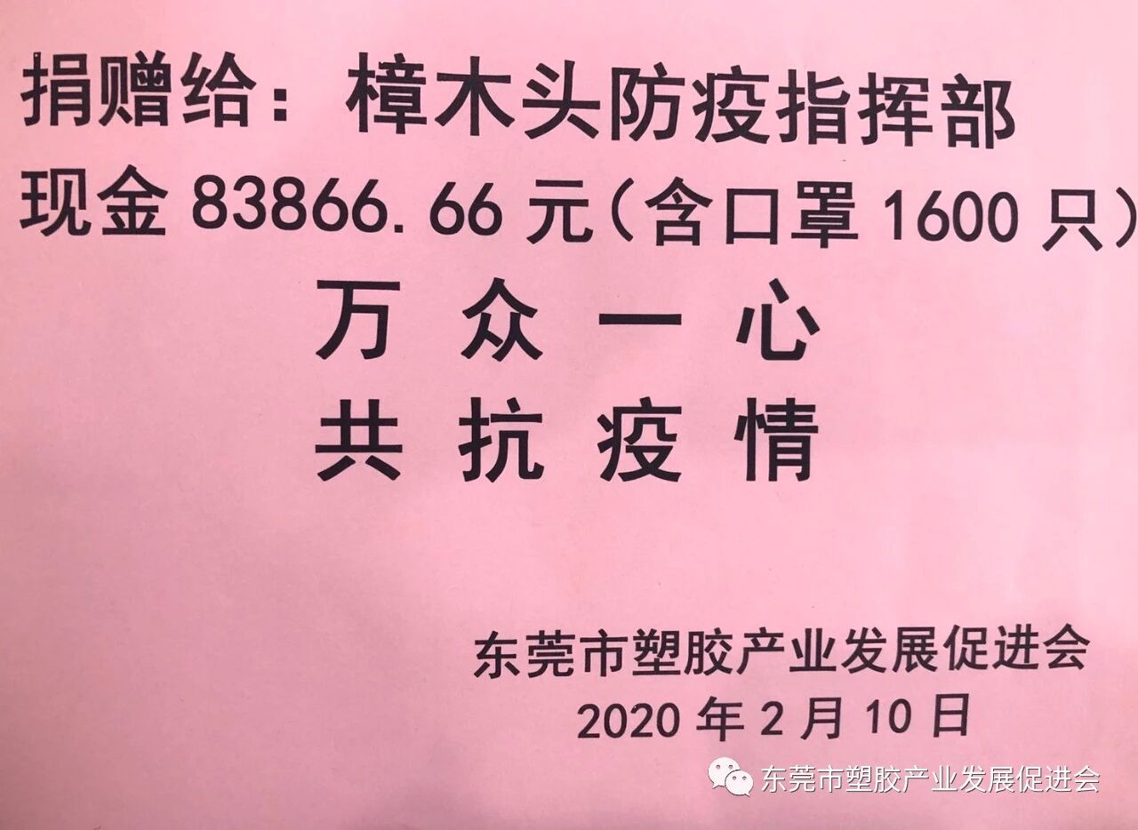 2020年元月30日,看到樟木头镇防疫物资短缺的消息后,我会即时在本会发起了防疫物资捐赠活动,得到了广大会员的大力支持和积极响应,到2月9日,共为樟木头防疫工作募捐了现金83866.66元.